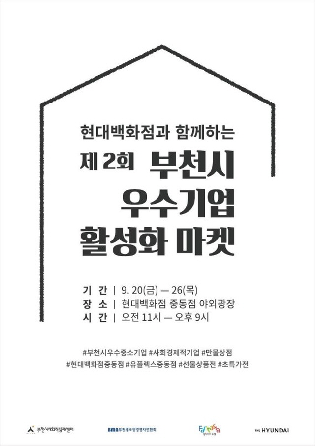 현대백화점은 오는 26일까지 중동점에서 부천시와 함께 '우수 중소기업 활성화 마켓'을 연다고 20일 밝혔다.