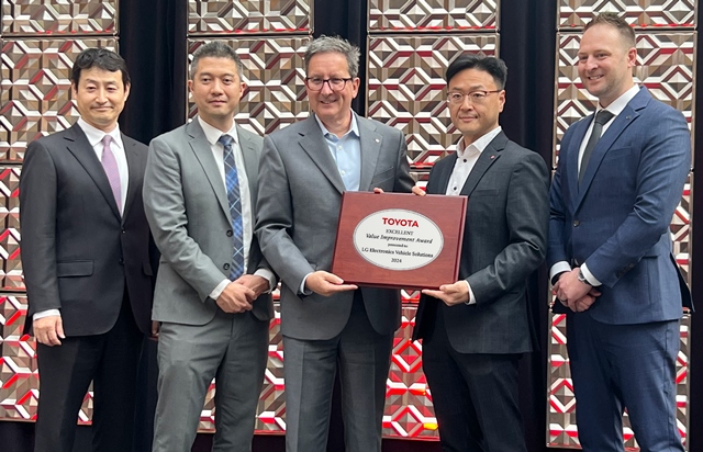 LG전자는 최근 미국 미시간주 디트로이트에서 열린 토요타 북미법인(TMNA)의 ‘연례 공급사 비즈니스 미팅’에서 우수 공급사에게 주어지는 ‘2024 최고가치혁신상’을 수상했다고 22일 밝혔다.