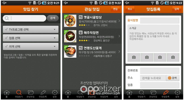 TV맛집앱에서는 검색어를 이용한 맛집 찾기도 가능하며, 관심맛집으로 맛집을 즐겨찾기 할 수 있습니다.