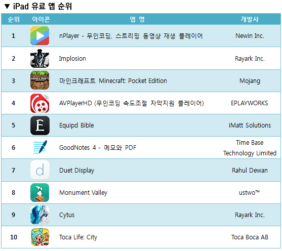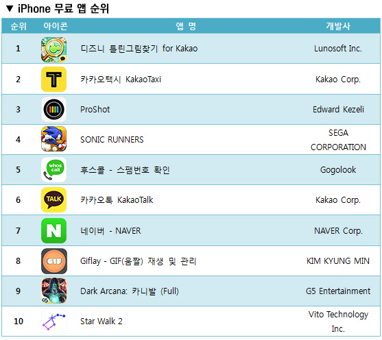 7월 1주차 App Store 주간 인기 앱 차트