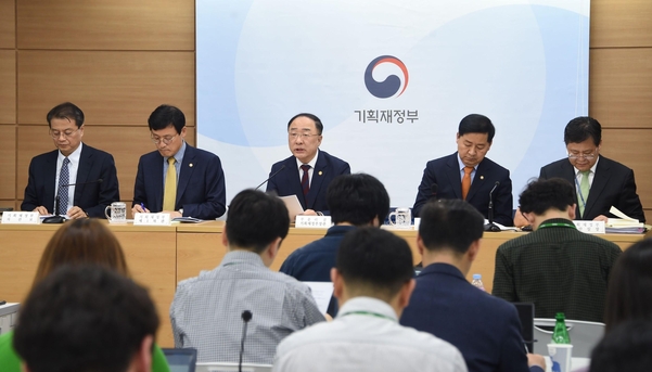 홍남기 경제부총리 겸 기획재정부 장관이 4월 22일 정부세종청사에서 열린 '미세먼지 등 국민안전'과 '민생경제 지원'을 위한 추가경정예산안 사전브리핑에서 모두발언을 하고 있다. /기재부 제공.