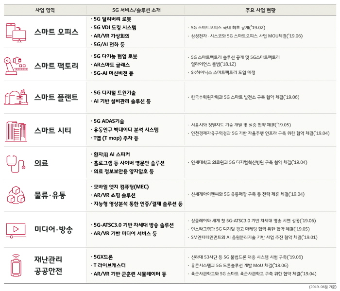 SK텔레콤의 산업군별 5G 서비스 및 사업현황 인포그래픽/SKT 제공