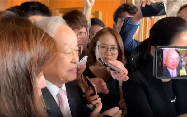 30일 트럼프 미국 대통령과 국내 대기업 총수 간담회에 참석한 손 회장이 간담회장을 나오고 있다./조선DB