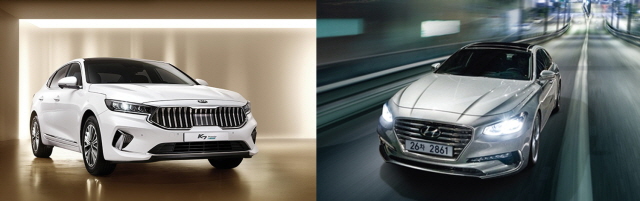 'K7 프리미어(왼쪽)'와 2019 그랜저 IG/현대‧기아차 제공