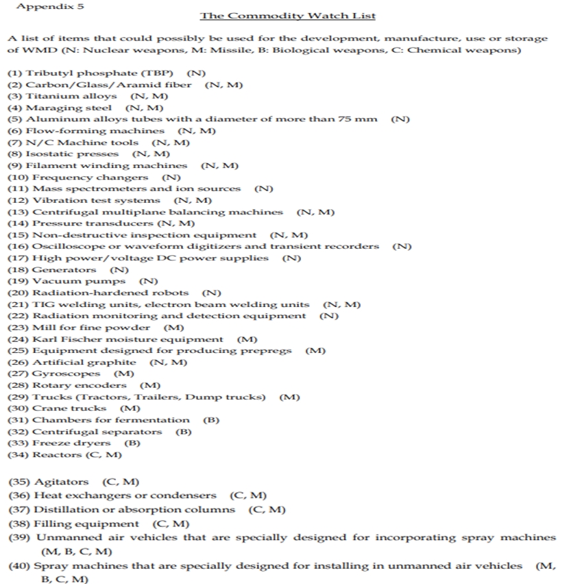 일본 캐치올규제 대상인 감시품목목록(Watch List)./일본경제산업성제공