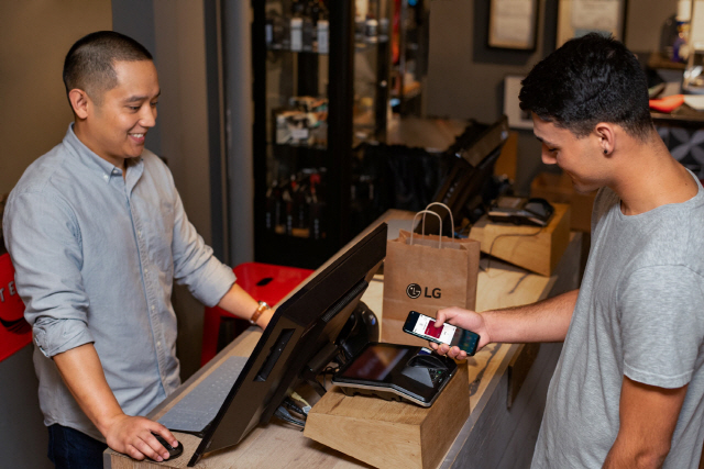 LG전자 스마트폰 사용 고객이 LG 페이로 물건을 구매하고 있다. /LG전자제공