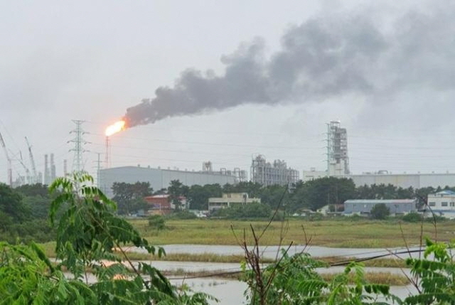 공장이 멈추자 한화토탈 측은 플레어 스택을 통해 남은 연료를 연소시키고 있다. 정전으로 공장 가동이 멈추면 폭발 방지를 위해 사용하다 남은 연료를 태워 없애야 한다.