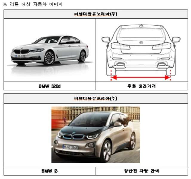 BMW코리아가 수입·판매한 'BMW 520d' 등 4개 차종의 경우 자기인증적합조사 결과 후륜의 윤간거리가 안전기준에 부적합해 리콜 대상으로 지정됐다. 이는 자동차관리법상 안전기준 위반에 해당돼 추후 시정률 등을 감안해 과징금이 부과될 예정이다.