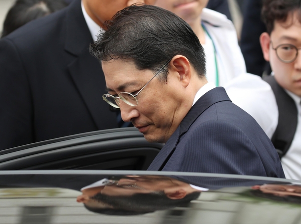 조현준 효성그룹 회장이 6일 1심 선고에서 징역 2년을 선고받은 뒤 법원을 빠져나가기 위해 차량에 타고 있다/연합