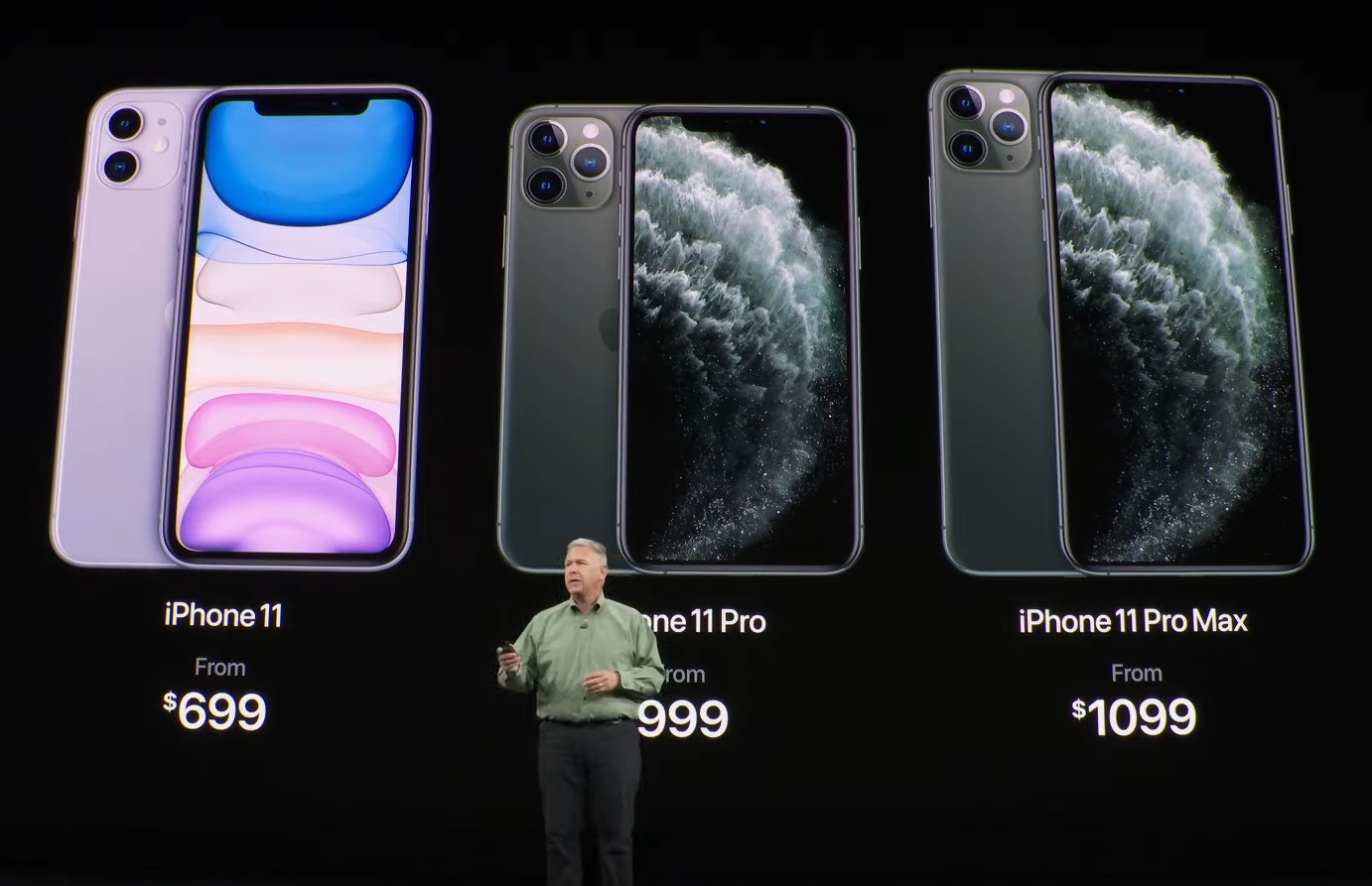 아이폰11은 64·128·256GB로 출시되며 699달러(약 83만원)부터 시작한다. 아이폰11 프로는 999달러(약 119만원), 아이폰11 프로 맥스는 1099달러(약 131만원)이며 64·256·512GB로 출시된다. 애플은 이번 신제품 3종은 오는 13일부터 사전예약 판매되며, 20일 30여개 1차국에서 출시된다.