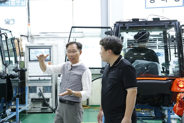 삼성전자 스마트공장 전문위원이 농기계 제조업체 위제스(전북 익산 소재)를 찾아 스마트공장 컨설팅을 진행하고 있다. /삼성전자 제공
