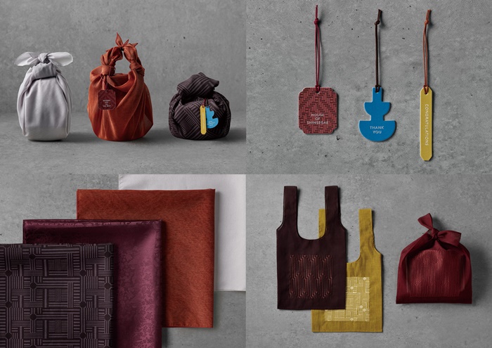 하우스오브신세계 헤리티지 브랜딩 이미지, (왼쪽상단부터 시계방향) 보자기 포장, 시그니처 패턴 참, 시그니처 패턴 자수 가방, 포장용 보자기/신세계 제공