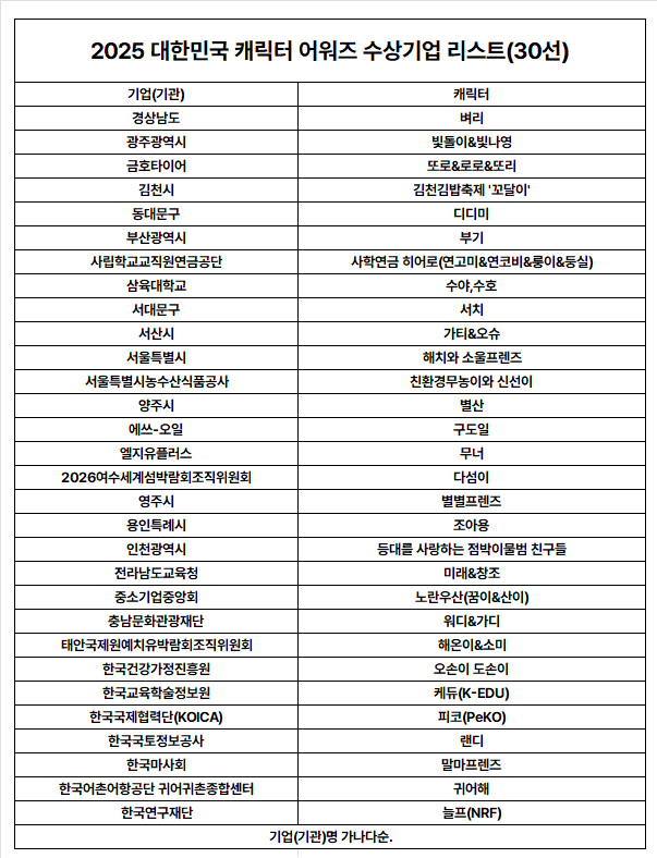 - 공공·지자체·산업 전반의 흐름을 보여준 ‘2025 대한민국 캐릭터 어워즈’ 열려