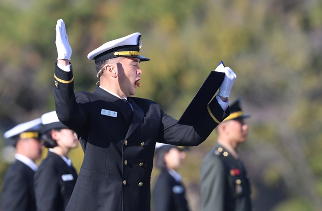 이지호 씨는 이날 경남 창원시 진해구 해군사관학교 연병장에서 열린 제139기 해군·해병대 사관후보생 수료 및 임관식에서 기수 대표로 제병 지휘를 했다. 이지호 씨는 지난 9월 말 해군 학사사관후보생으로 입대해 약 11주의 훈련을 마쳤다.