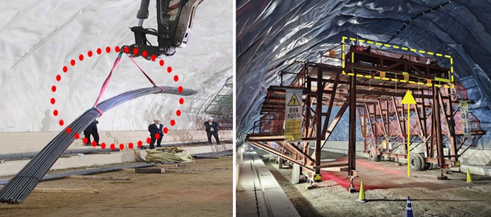 롯데건설이 터널공사 현장에서 근로자들의 안전을 확보할 수 있는 철근 양중 기술을 ‘세종~안성 건설공사(제3공구)현장’에 적용했다.