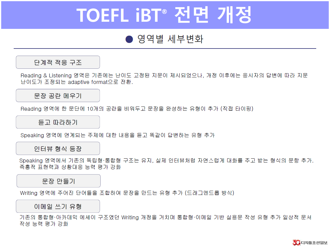 디지틀조선일보는 2026년 1월 21일부터 전면 개편되는 TOEFL iBT® 시험을 완벽하게 대비할 수 있는 “ETS공식토플모의고사”를 12월 11일 출시했다고 12일 밝혔다.