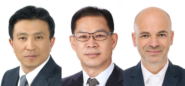 기아 윤승규 사장(왼쪽부터), 현대제철 이보룡 사장, 현대차 만프레드 하러 사장 /현대차 제공