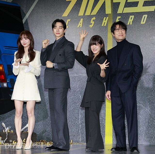 22일 웨스틴 서울 파르나스에서 넷플릭스 시리즈 '캐셔로' 제작발표회가 진행돼 이창민 감독을 비롯해 배우 이준호, 김혜준, 김병철, 김향기, 이채민, 강한나가 참석했다. '캐셔로'는 결혼자금, 집값에 허덕이는 월급쟁이 '상웅'(이준호)이 손에 쥔 돈만큼 힘이 강해지는 능력을 얻게 되며, 생활비와 초능력 사이에서 흔들리는 생활밀착형 히어로 시리즈다.