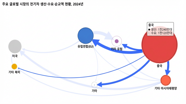 2024년 주요 글로벌 시장 전기차 생산·수요·순무역 현황=국제에너지기구./ 디지틀조선TV