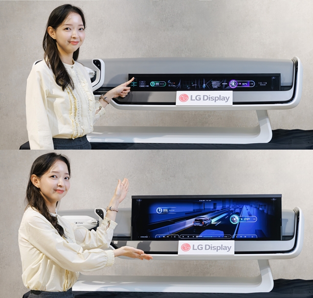 차량용 슬라이더블 OLED를 앞좌석 대시보드에 적용한 콘셉트도 최초 공개한다. 얇고 유연하면서도 초고화질을 구현하는 P(플라스틱)-OLED를 적용, 화면 일부를 곡률 30R(반지름 3cm 원)로 돌돌 말아 대시보드 내부로 숨길 수 있다. 주행 중에는 작은 화면으로 내비게이션 등 기능을 사용하다가, 자율주행 모드 또는 정차 시에는 33인치 대화면으로 확장해 활용할 수 있다.