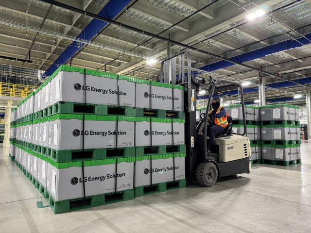LG에너지솔루션이 캐나다 합작법인인 넥스트스타 에너지 공장에서 에너지저장장치(ESS) 제품을 출하하고 있다. /LG에너지솔루션 제공