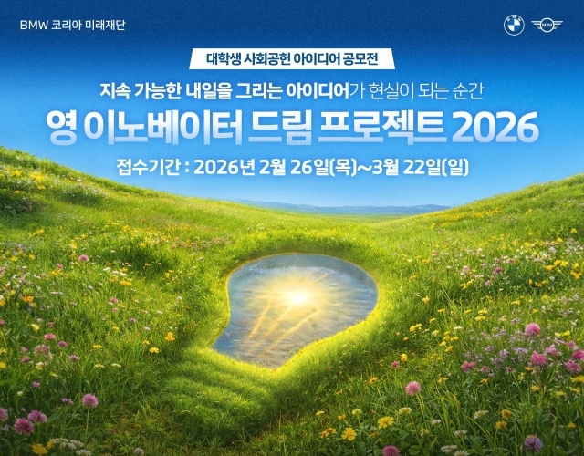 BMW 코리아 미래재단이 대학생 대상 사회공헌 아이디어 공모전 ‘영 이노베이터 드림 프로젝트(Young Innovator Dream Project)’를 개최하고 내달 22일까지 아이디어를 공모한다고 26일 밝혔다.