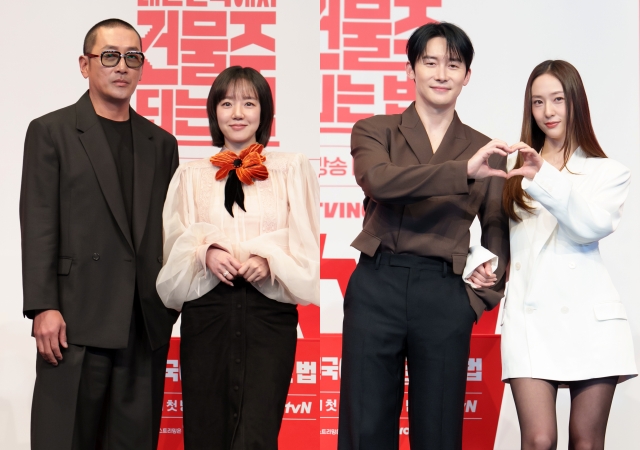 9일 오후 서울 구로구 더링크호텔 서울에서 tvN 새 토일드라마 '대한민국에서 건물주 되는 법' 제작발표회가 열려 임필성 감독을 비롯해 배우 하정우, 임수정, 김준한, 정수정, 심은경이 참석했다.