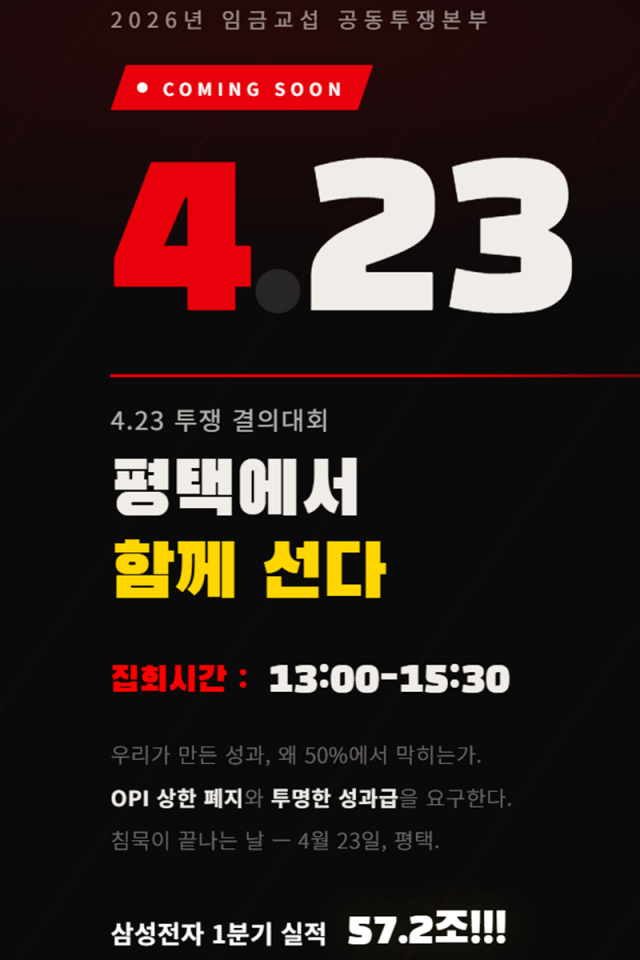 초기업노동조합 삼성전자 지부가 오는 23일 열리는 ‘투쟁 결의대회’를 앞두고 게시한 자료.