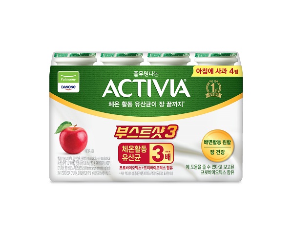 풀무원다논의 10년 연속 세계 판매 1위 발효유 브랜드 ‘액티비아’가 선보인 신제품 ‘액티비아 부스트샷3’는 액티비아의 체온 활동 유산균을 기존 대비 3배 담은 제품으로 출시 3개..