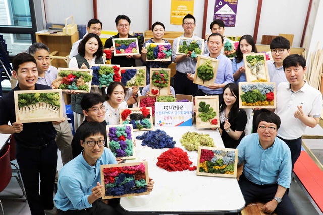 CJ대한통운, 친환경 이끼와 폐목재 활용 공기정화액자 만들기 봉사활동