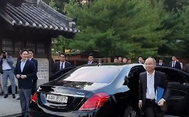 손정의 소프트뱅크 그룹 회장이 이재용 삼성전자 부회장, 정의선 현대차그룹 수석부회장, 구광모 LG그룹 회장, 김동관 한화큐셀 전무, 이해진 네이버 글로벌..