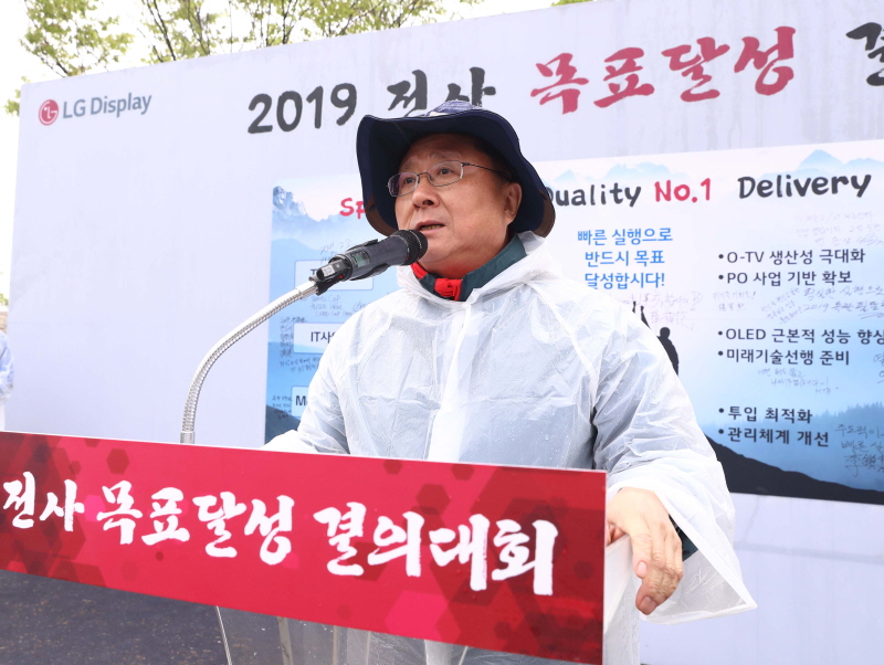 LG디스플레이 최고경영자(CEO) 한상범 부회장이 25일 경기도 파주 사업장에서 가진 '2019년 전사 목표달성 결의대회'에서 "올해는 새로운 도약을 위..