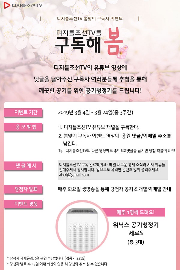 디지틀조선TV, 봄맞이 구독자 이벤트 '디지틀조선TV를 구독해봄' 실시