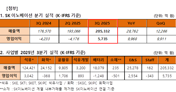 SK이노베이션이 올 3분기 석유사업의 흑자 전환과 E&S 사업의 견조한 실적에 힘입어 5000억 원대 영업이익을 기록하며 흑자 전환했다. 다음 달 1일 ..